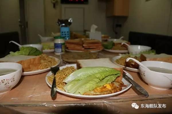 中西结合,冷热搭配,你不得不说潜艇兵的伙食丰盛!潜艇出航,要携带大量罐头、蔬菜、以及能长时间存放的水果,此外还要带上米面等。由于淡水有限,因此潜艇上所带的米、蔬菜、水果都是事先处理过的,可以直接下锅、入口。一般先吃米面、蔬菜、水果,到最后再罐头。当然,有时全员行动,一起包个饺子,调剂一下伙食,也是别有一番风味。