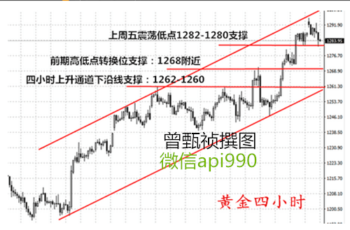 目前从技术面来看,日线上布林带张口,5日均线与10日均线双线向上,macd红色能量柱放量逐渐加强,快慢双线向上,sto双线向下。日内依旧是多头的大趋势。4小时线上布林带走平,K线突破布林带下轨,5日均线与10日均线双线向下,macd绿色能量柱放量加强,快慢双线向下,sto双线向下。短期内有回调需求,下方关注1280短期支撑,靠近这一位置可轻仓尝试多单,行情走势预计先跌后涨,操作上Q2315342759建议还是看一个回落调整。